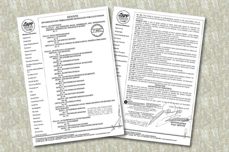 Na última quarta-feira (05), o Estatuto da APP foi registrado no cartório de Registro de Títulos e Documentos, em Curitiba. O documento, aprovado em assembleia estadual no início de fevereiro, foi debatido e construído coletivamente na segunda etapa do XII Congresso Estadual da APP. O Estatuto da APP-Sindicato (clique AQUI para baixar) é a normativa que […]