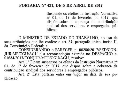 Cobrança obrigatória do Imposto Sindical é suspensa pelo Ministério do Trabalho
