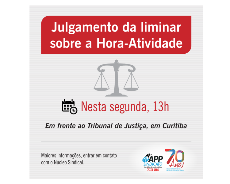 A hora-atividade jamais foi esquecida por quem vivencia o cotidiano escolar, inclusive, o assunto é incansável para a direção da APP-Sindicato. Nesta semana, os(as) dirigentes levaram em mãos aos(às) desembargadores(as) do Tribunal de Justiça do Estado do Paraná (TJ-PR), documentos detalhados sobre os problemas criados pelo governo do Paraná, em 2017. Nesta sexta-feira (14), novas […]
