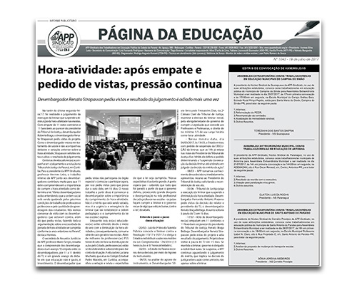 Com profundo pesar, a APP-Sindicato comunica o falecimento da professora Andreia Moraes Possamai, do núcleo sindical Curitiba Sul. A professora lecionava no Colégio Estadual João Mazzarotto, em Curitiba. O velório da educadora acontece na Igreja Assembleia de Deus, em Jardim Alegre, Paraná. O corpo será enterrado às 17h desta terça-feira (18). A APP-Sindicato lamenta o […]