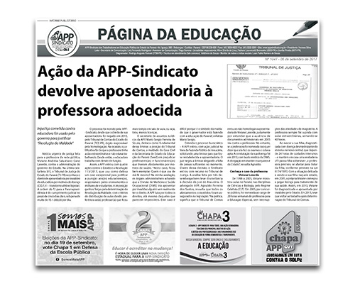A direção da APP-Sindicato expressa, com pesar, o falecimento do educador Jerson José. O professor de Filosofia, do Colégio Estadual Júlio Szymanski, em Araucária (RMC), certamente deixa lembranças e ensinamentos para a educação. Hoje (06), as aulas estão suspensas no Colégio Júlio Szymanski pelo ocorrido. Mais informações com o Núcleo Curitiba Metropolitana Sul. Para a […]