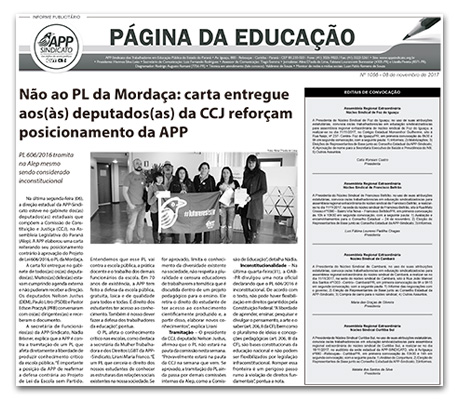 Nesta terça-feira (07) pela manhã, o presidente da APP-Sindicato, professor Hermes Leão, protocolou na Secretaria de Estado da Educação (Seed), o documento chamado Defesa da Legalidade. Vários itens da pauta representam a luta da categoria contra os retrocessos implantados no ano letivo de 2017. Professores(as) e funcionários(as) de escolas de todo o Paraná participaram da […]