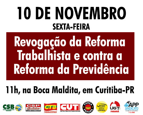 10 de novembro: Dia Nacional de Mobilização contra a Reforma Trabalhista