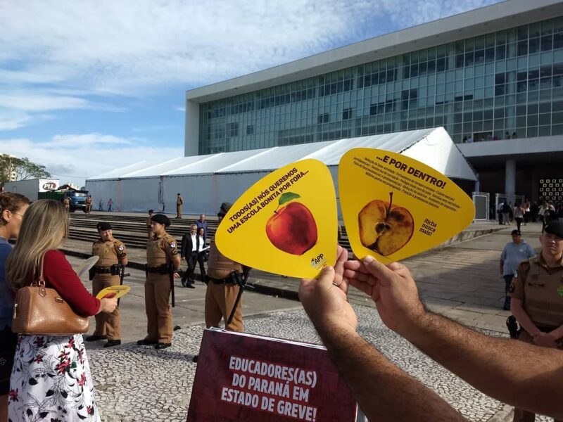 Visíveis contrastes predominaram nesta quarta-feira (28), durante a cerimônia de distribuição de recursos à educação, no Palácio Iguaçu, em Curitiba (PR). Entre a propaganda e a realidade dos investimentos do governo do Paraná existe um espaço não preenchido: a valorização de fato da educação da rede estadual e de seus(as) envolvidos(as). A direção da APP-Sindicato, […]