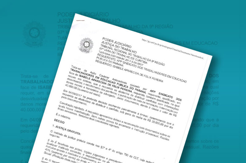 Em setembro de 2017, durante as eleições do Sindicato, a APP entrou com uma ação na justiça contra a Chapa 3 pela distribuição de material de campanha difamatório contra a entidade. No dia 09 de abril, a Justiça do Trabalho condenou a Chapa 3 a indenizar a APP-Sindicato por danos morais, no valor de R$ […]