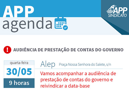 A APP-Sindicato estará presente na audiência pública de prestação de contas do governo do Estado para levar a pauta da campanha salarial 2018. A reunião será nesta quarta-feira (30), às 9h30 no plenário da Assembleia Legislativa do Paraná (Alep) e os professores(as) e funcionários(as) de escolas da rede pública estadual estão convocados(as) para participar. Serão […]