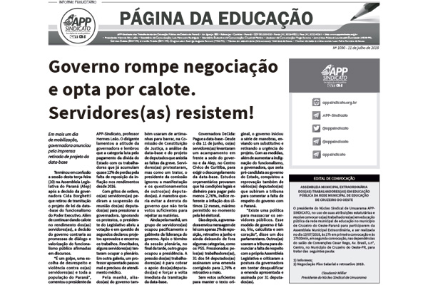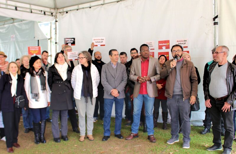 No último dia de trabalho antes do recesso de julho, deputados(as) estaduais realizaram uma sessão que ficou marcada pelas palavras de ordem dos(as) servidores(as): ‘Data-base é dívida’ e ‘Chega de calote’. Os gritos ecoaram por todo o Plenária da Assembleia Legislativa do Estado (Alep) e foram um protesto contra a decisão da governadora Cida Borghetti […]