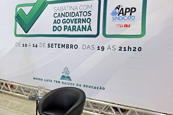 A segunda entrevista do quarto dia da sabatina da APP-Sindicato com os(as) candidatos(as) ao governo do Paraná, nesta quinta-feira (13), seria com Ratinho Junior (PSD), mas ele não compareceu. Inicialmente o candidato confirmou presença, mas depois enviou um comunicado informando que optou por não participar, em razão de outra agenda da sua campanha. O candidato […]