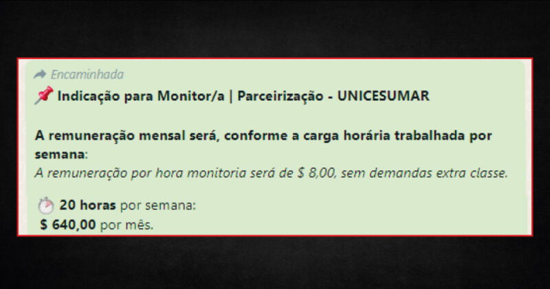 Unicesumar pagará R$ 640 (20h) para monitores substituírem professores da rede em cursos técnicos
