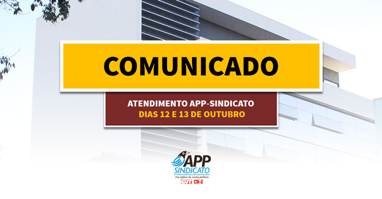 Em virtude do feriado nacional de Nossa Senhora Aparecida, a Padroeira do Brasil, a sede estadual e os Núcleos Sindicais da APP-Sindicato ficarão fechados nos dias 12 e 13 de outubro. O atendimento aos(às) educadores(as) será retomado na segunda-feira (16), com atendimento presencial e virtual, das 8h às 12, e das 14h às 18h. O […]