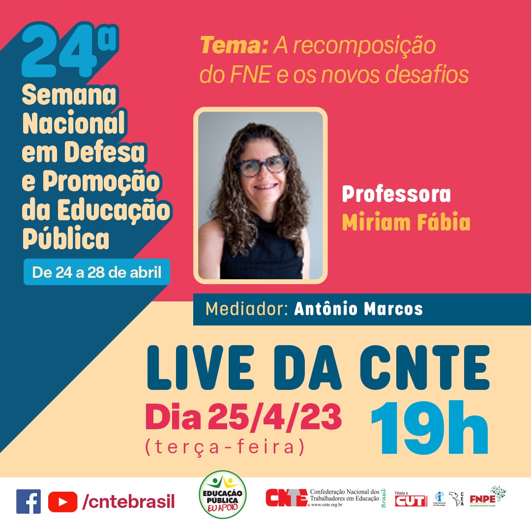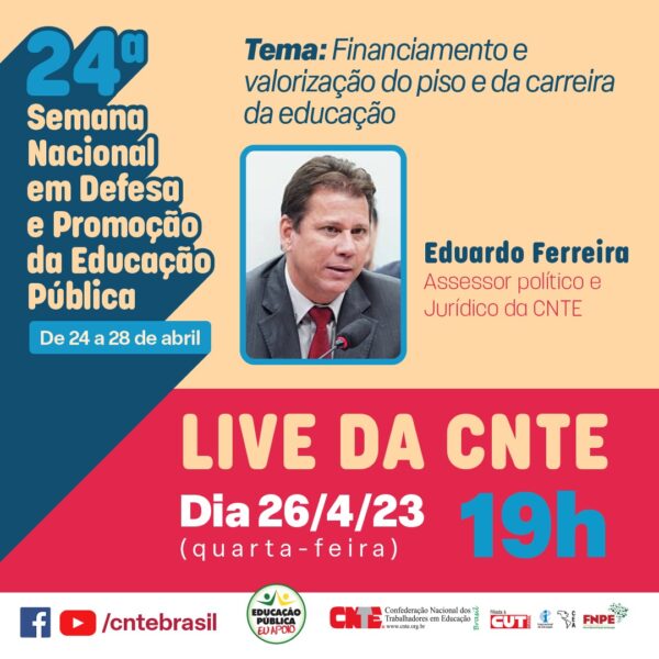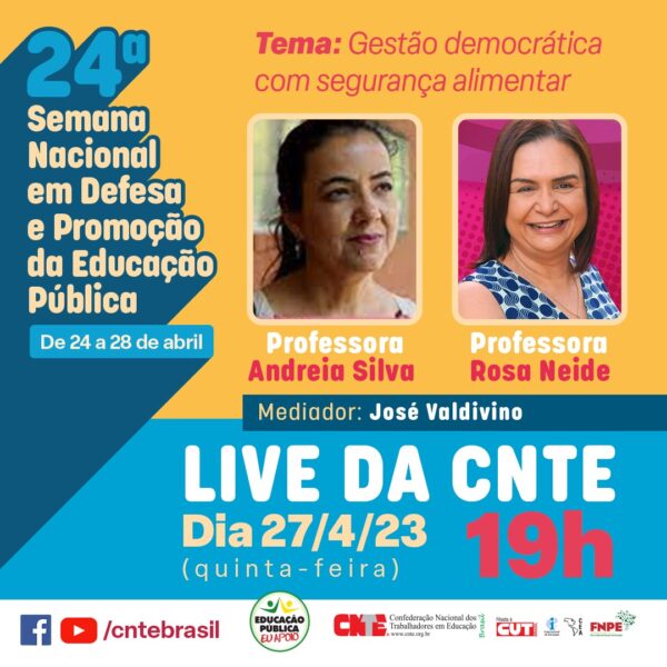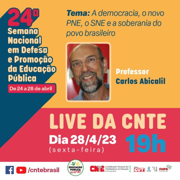 Convocada pela CNTE, a 24ª Semana Nacional em Defesa e Promoção da Educação Pública tem como mote “Soberania se faz com educação pública e participação social”.