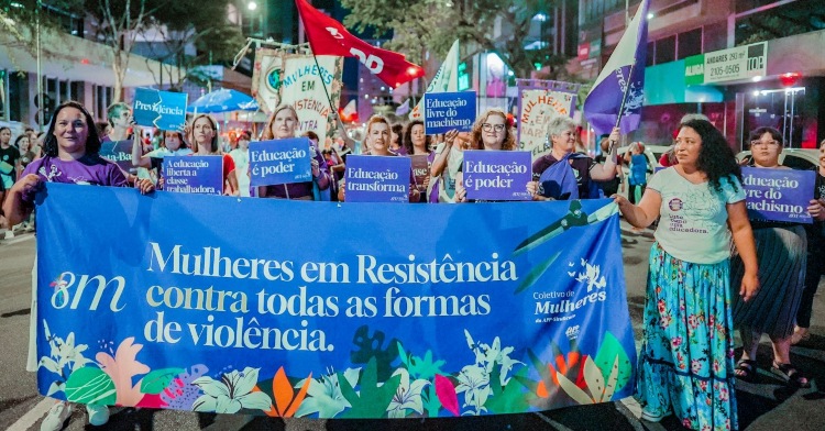 Nesta quarta-feira (8), mulheres, sindicatos, movimentos sociais e coletivos realizaram um grande ato em defesa da vida das mulheres em Curitiba. A mobilização, que reuniu milhares de pessoas, denunciou a violência de gênero, a disparidade salarial e o ataque à autonomia das mulheres.