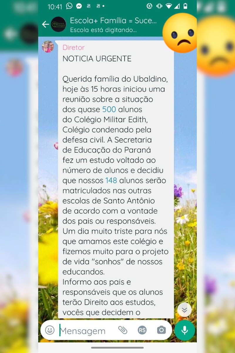 Profundamente desapontada com a decisão do governo Ratinho Jr., Sueli relata preocupação com o futuro dos filhos. Segundo ela, na cidade só há mais uma escola de ensino integral, mas que só oferta ensino fundamental. Ensino médio em tempo integral só existe no Ubaldino e até o momento não teriam sido abertas novas vagas para acolher os(as) estudantes(as) prejudicados(as), diz ela.