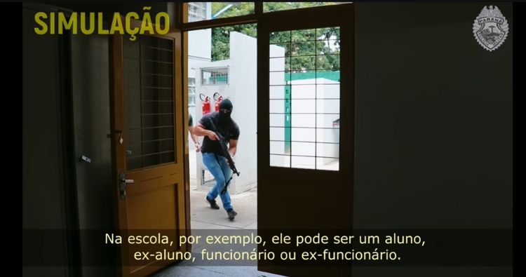 Em vídeo publicado nas redes sociais da Polícia Militar do Paraná, funcionários(as) e ex-funcionários(as) de escola são citados(as) como potenciais “agressores ativos”, terminologia que se refere a indivíduos engajados em matar ou tentar matar pessoas no ambiente escolar.