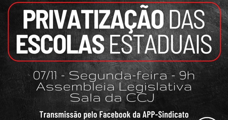 Na próxima segunda-feira (7), a Assembleia Legislativa do Paraná (Alep) realiza uma audiência pública para debater a proposta de Ratinho Jr de privatizar 27 escolas da rede pública estadual.