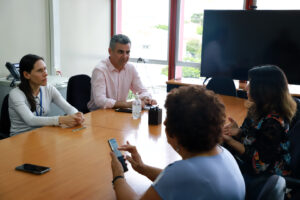 Na reunião, estavam presentes Sandra dos Santos, assessora da APP, Telma Cristine Cabral, responsável pelo atendimento e recadastramento, Luiz Alvaro Lima Da Silva, Analista Prev SR, Felipe Vidigal, diretor-presidente da ParanáPrevidência e Maria Adelaide Mazza Correia, secretária estadual de Aposentados(as).