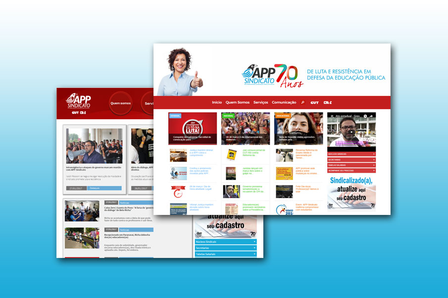 APP-Sindicato, mesmo com quase 70 anos de história, continua moderna e atual. Suas ferramentas de comunicação com a categoria passam constantemente por avaliação e modernização. O site da APP é um exemplo disso. Ele passou por uma atualização e exibe nova organização de informações e conteúdos.