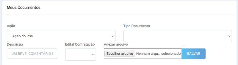 f) Clique em salvar e repita o processo até enviar todos os documentos