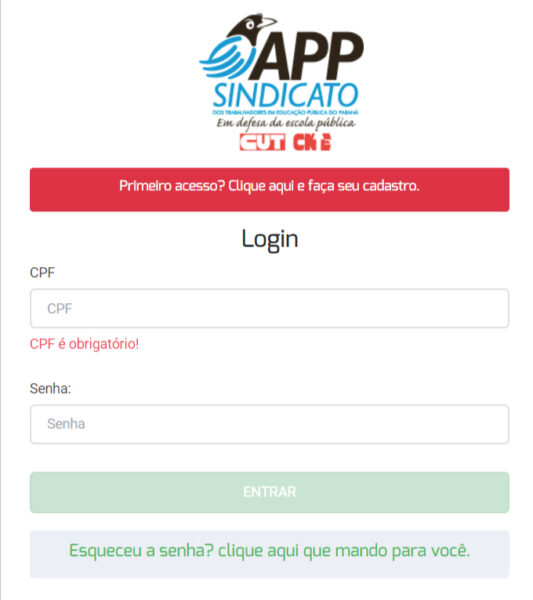 1. Acesse o portal “Minha Sindicalização” pelo site da APP ou clique aqui para entrar.