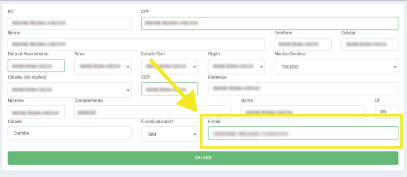a) documentos fornecidos pelo(a) sindicalizado(a)