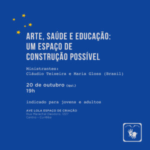 20/10 (quinta-feira) às 19h – Palestra “Arte, Saúde e Educação: Um Espaço de Construção Possível“.
