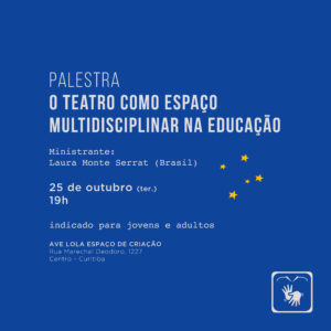 25/10 (terça-feira) às 19h – Palestra “O Teatro como espaço multidisciplinar na educação“.