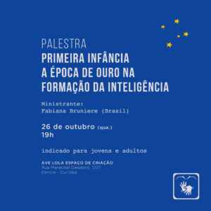 26/10 (quarta-feira) às 19h – Palestra “Primeira Infância – a época de ouro na formação da inteligência“.