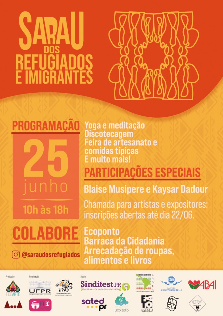 Dia 25 de junho, sábado, das 10h às 18h, Curitiba recebe o Sarau dos Refugiados e Imigrantes no pátio da reitoria da Universidade Federal Do Paraná, no centro da cidade.