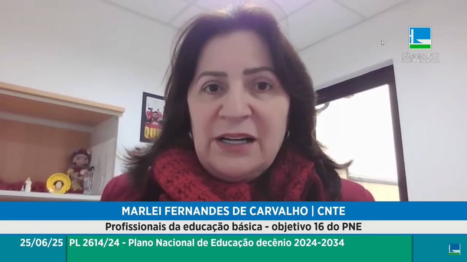Representando a CNTE na audiência, Marlei Fernandes reafirmou que, além da sobrecarga de trabalho, a pressão, a falta de condições de trabalho e a baixa valorização são raízes dos problemas de saúde física e mental que assolam os(as) educadores(as) brasileiros.