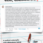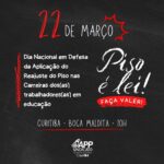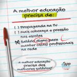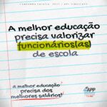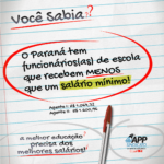 Com o mote “A melhor educação precisa dos melhores salários”, a campanha salarial da APP faz referência à propaganda do governo sobre a qualidade da educação do Paraná, contrastando com a desvalorização da categoria. Ao longo do mês de março, o Sindicato realiza diversas publicações nas redes sociais expondo a realidade dos(as) educadores(as), além de trabalhar com materiais impressos nas escolas.