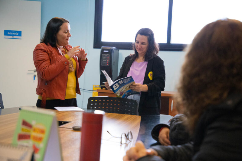 Em sua visita, a candidata conversou com dirigentes estaduais da APP e detalhou suas propostas para a educação pública e o conjunto do funcionalismo público paranaense, além de ouvir as principais pautas da categoria e firmar um compromisso com a agenda sindical.
