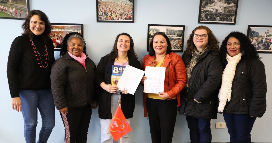 No encontro, estiveram presentes a Presidenta da APP-Sindicato, Walkiria Olegário Mazeto, a Secretária de Organização, Silvana Rodacoswiski, a Secretária Executiva Educacional, Nádia Brixner, a Secretária da Mulher Trabalhadora e dos Direitos LGBTI+, Margleyse dos Santos e a Secretária de Promoção de Igualdade Racial e Combate ao Racismo, Celina Wotcoski.