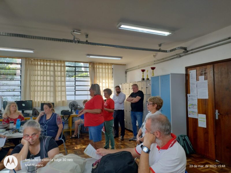 No Colégio Estadual Humberto de Alencar Castelo Branco, em Pinhais, os(as) educadores(as) questionaram sobre o andamento do diálogo com a Seed e o calendário de lutas da APP.