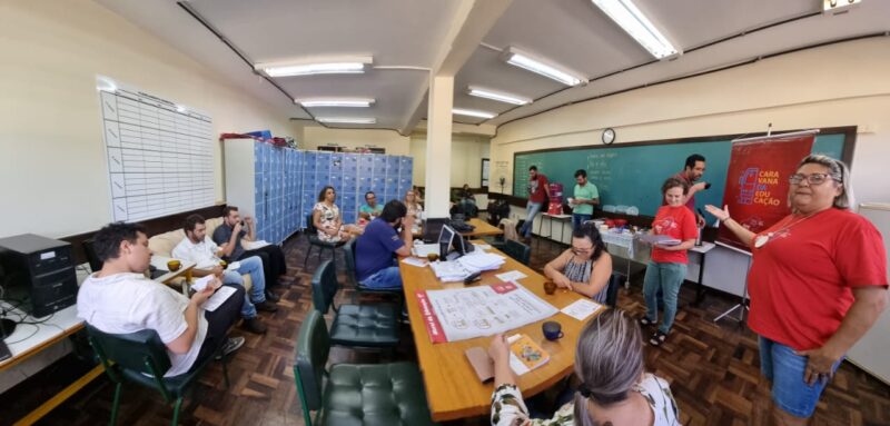 Durante as agendas, os(as) representantes da APP atualizaram os(as) educadores(as) sobre as negociações com a Secretaria de Estado da Educação (Seed) e o conjunto do governo com foco na campanha salarial.