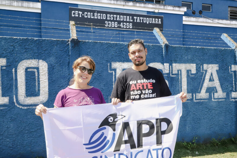 Durante a manhã, dirigentes da APP estadual visitaram o Colégio Estadual Tatuquara, na região do Campo do Santana, onde apresentaram o mote da Campanha Salarial e a importância da mobilização pela aplicação do Piso Nacional do Magistério, que atingiu o índice de 14,95% neste ano.