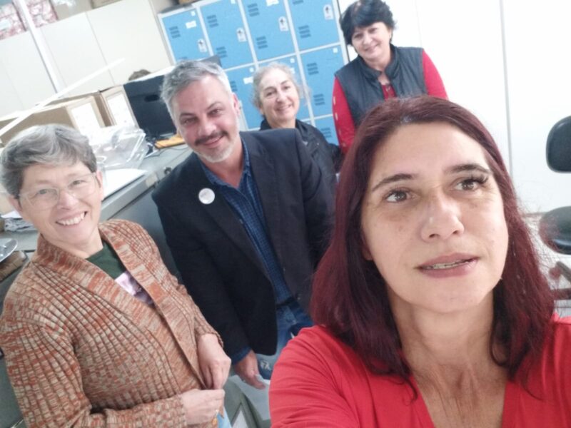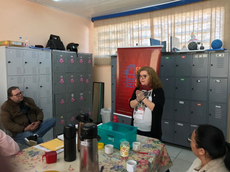 “A recepção foi muito boa. Distribuímos materiais, tiramos muitas dúvidas sobre os reajustes e ouvimos as angústias enfrentadas na sala de aula. Em todas as escolas a questão das plataformas está no centro dos problemas. Não as plataformas em si, mas a forma pela qual elas foram implementadas pelo governo”, avalia Silvana Prestes, secretária de Organização da APP-Sindicato.