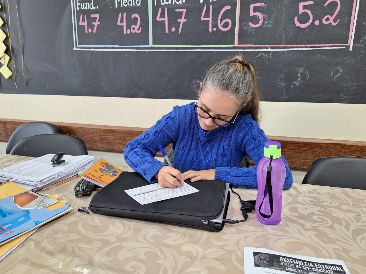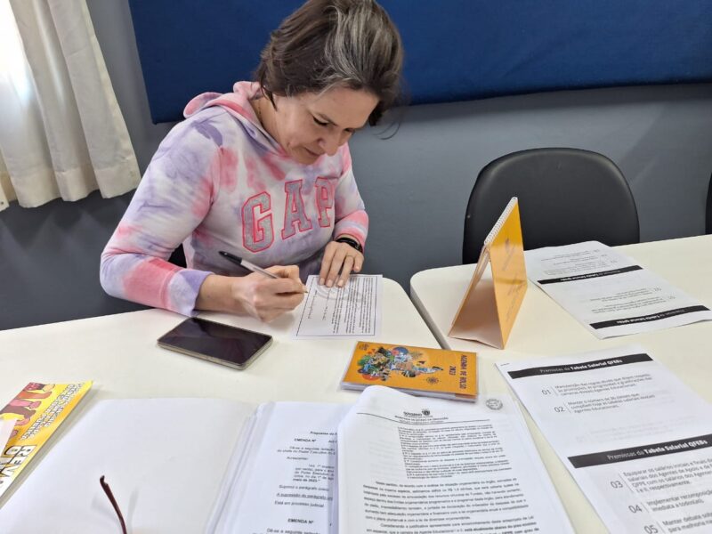 O trabalho de base é essencial para ouvir a categoria, debater os desafios da escola pública e mobilizar professores(as) e funcionários(as) para a luta permanente por valorização e melhores condições de trabalho. Em uma semana movimentada pelo envio do PL 532/23 à Assembleia Legislativa, a pauta salarial foi o principal ponto de debate nas escolas.