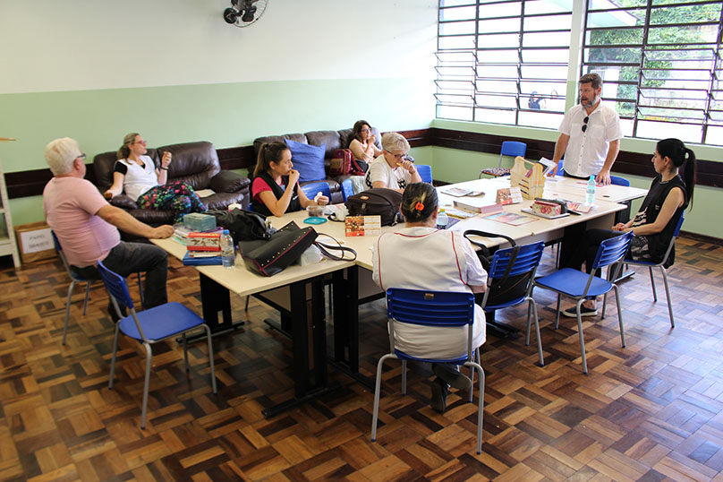 A professora Elem Poiani, que leciona na Escola Estadual Angelo Volpato, conta que receber a Caravana é um dos meios para estabelecer contato com o Sindicato.