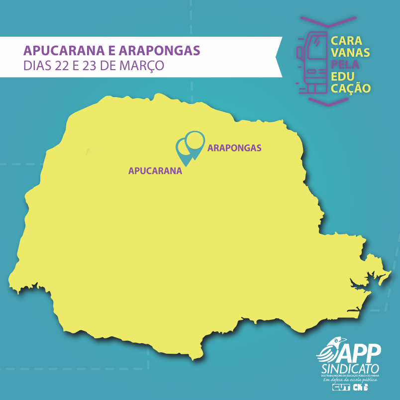 A APP-Sindicato coloca a Caravana pela Educação a circular em Arapongas e Apucarana, nesta quinta-feira (22) e sexta-feira (23), seguindo o propósito do projeto que é debater a pauta da categoria, analisar a educação da rede pública em âmbitos nacional e estadual.