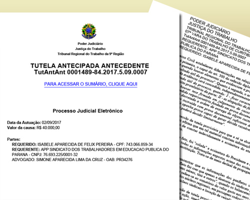 A APP-Sindicato entrou com uma ação na justiça pedindo que a distribuição de um material divulgado pela chapa 3, que concorre com demais chapas nas eleições para direção estadual do Sindicato, fosse suspensa. O Tribunal Regional do Trabalho, por meio do juiz Ricardo Jose Fernandes de Campos, acolheu o pedido ...