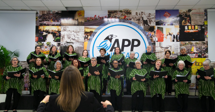 O Coral da APP fez uma apresentação histórica na tarde desta segunda-feira (9) na Sede do Sindicato, em Curitiba, para celebrar os 40 anos de sua criação. A presidenta da APP, Walkiria Mazeto, saudou as integrantes do grupo com uma mensagem de agradecimento. “As vozes que antes se ouviam pelos ...