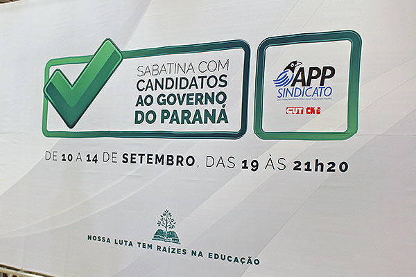 O candidato ao governo do Paraná pelo partido Rede Sustentabilidade, participou nessa quinta-feira(12) da sabatina da APP-Sindicato com os(as) candidatos(as) ao governo do Paraná. Ele respondeu seis perguntas elaboradas pela direção estadual do Sindicato e duas enviadas por profissionais da educação. Antes do início da entrevista, o presidente da APP-Sindicato, ...