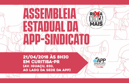Atenção educadores(as) da rede pública do Paraná, neste sábado, dia 21, o compromisso é de todos(as) para as decisões que serão votadas na Assembleia Estadual da APP. A partir das 8 horas, a categoria está convocada para a prestação de contas da instituição na Assembleia Ordinária, que segue com a ...
