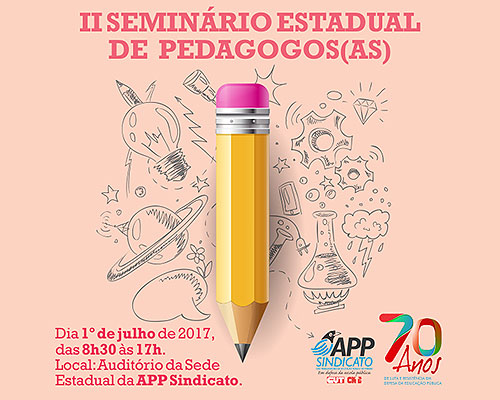 Dia 01 de julho, na APP-Sindicato, iniciará com o II Seminário Estadual de Pedagogos(as). Será um sábado recheado por um dia inteiro de debates e atividades que norteiam a estrutura escolar, com foco no Paraná. Das 8h30 às 17 horas, na sede estadual do Sindicato, em Curitiba (PR), promete ser ...