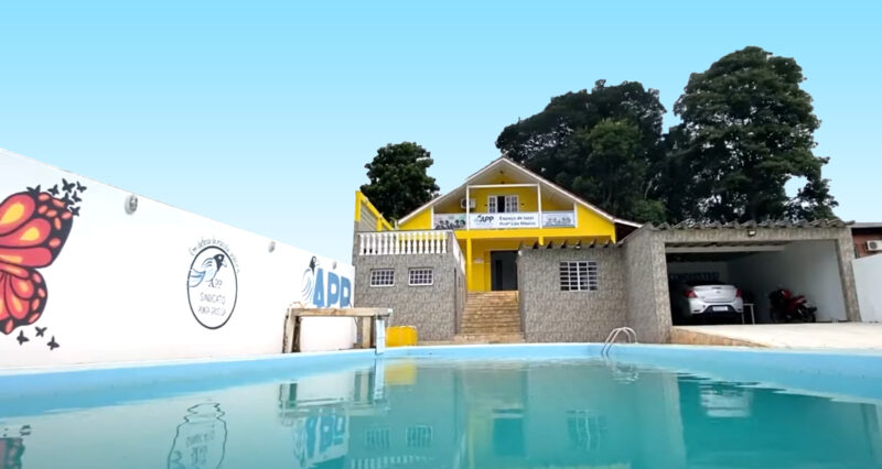 O local conta com uma completa estrutura para realização de estudos e hospedagem, com dormitórios, banheiros, sala de estar, cozinha, piscina, churrasqueira, estacionamento e um amplo salão, para festas e cursos.