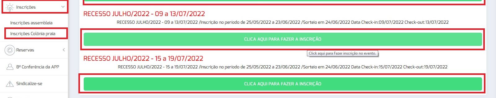 Sindicalizados(as) interessados(as) em participar do sorteio para as colônias de praia para o recesso escolar têm até amanhã para efetuar as inscrições. O sorteio será realizado nesta sexta-feira, às 17h.