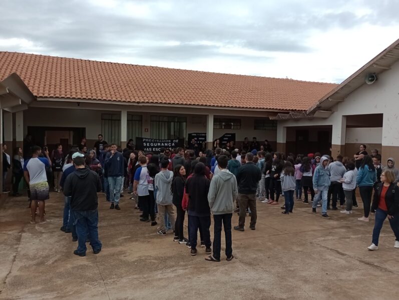 Com faixas e cartazes, estudantes, pais e mães pediram paz para trabalhar, ensinar e aprender, manifestando repúdio a todas as formas de violência, em especial aos ataques direcionados a profissionais da educação. Os Núcleos Sindicais da APP de Londrina e Cornélio Procópio se somaram à mobilização na frente da escola.