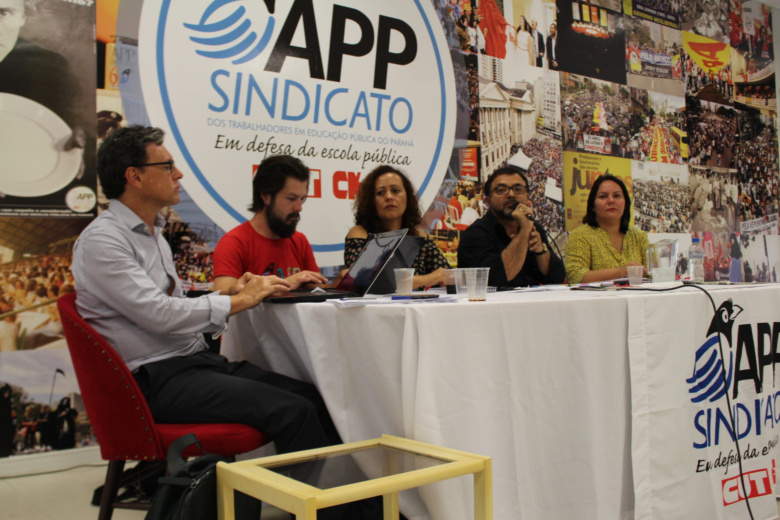 Representantes dos 29 Núcleos Sindicais da APP-Sindicato, de todo Paraná, estiverem reunidos hoje (20), em Curitiba, para avaliar as últimas ações do governo do Estado. Os(as) Conselheiros(as) representam toda a base de sindicalizados(as) e são unânimes ao avaliar: os direitos dos(as) trabalhadores(as) estão sofrendo ataques intensos. A diminuição da hora-atividade, a punição dos(as) profissionais que se afastaram para tratamento de saúde, são exemplos que a educação não é prioridade para o governo Beto Richa (PSDB).