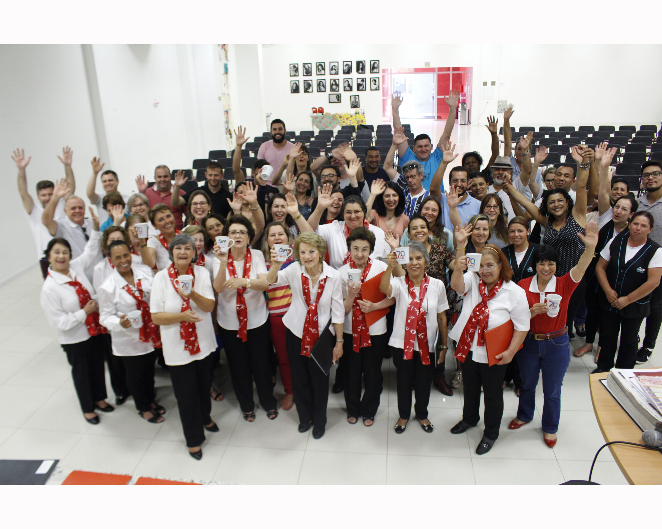 O Coral da APP apresentou o repertório de natal na sede estadual do sindicato na tarde de hoje (04). O coral é formado por educadoras aposentadas e completa 35 anos de existência em 2017. Além da APP, outras apresentações estão previstas para apresentar o repertório de natal do coral.