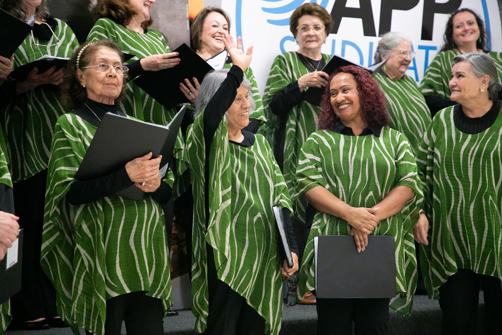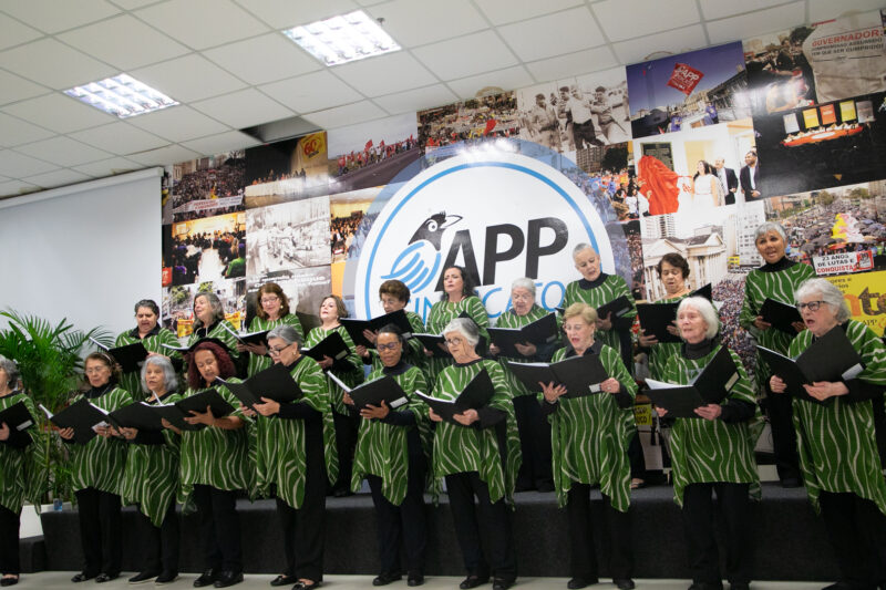 A presidenta da APP, Walkiria Mazeto, saudou as integrantes do grupo com uma mensagem de agradecimento. “As vozes que antes se ouviam pelos corredores das escolas hoje são ouvidas entonando e multiplicando acordes. Nessa instituição septuagenária de luta e resistência que é a APP, somos também música há 40 anos”, disse.